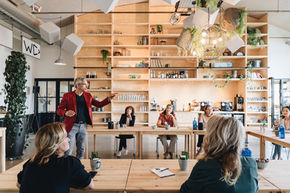 Deze creatieve ruimte kan soms ingezet worden in een break out sessie om in kleinere groepjes te werken. Of in klein gezelschap te besloten te vergaderen.